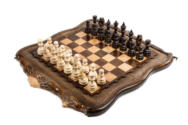 Šiame prabangiame mediniame rinkinyje dera klasikiniai šachmatų ir nardų žaidimai, o išskirtinis ararato kontūras suteikia elegantiškumo. Sukurtas atkreipiant dėmesį į detales, jis siūlo unikalų rafinuotumo ir nesenstančios pramogos derinį. puikiai tinka kolekcionieriams ir entuziastams, šis rinkinys yra ir funkcionalus žaidimas, ir gražus eksponavimas.